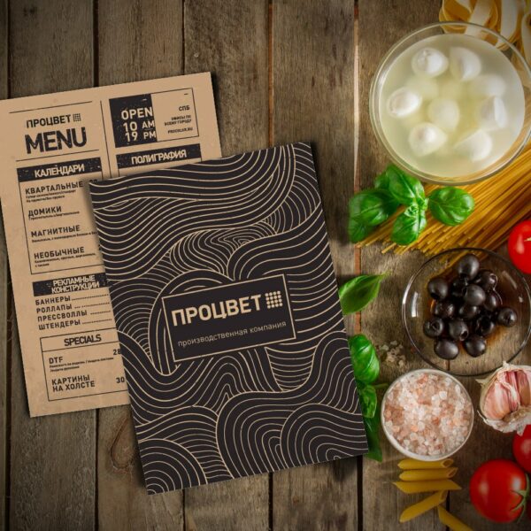И конечно, делать и печатать меню нужно у профессионалов, у тех, кто не одну собаку съел в полиграфии, и не одно меню изготовил. Да, да, именно у нас, в многоформатной производственной компании Процвет.